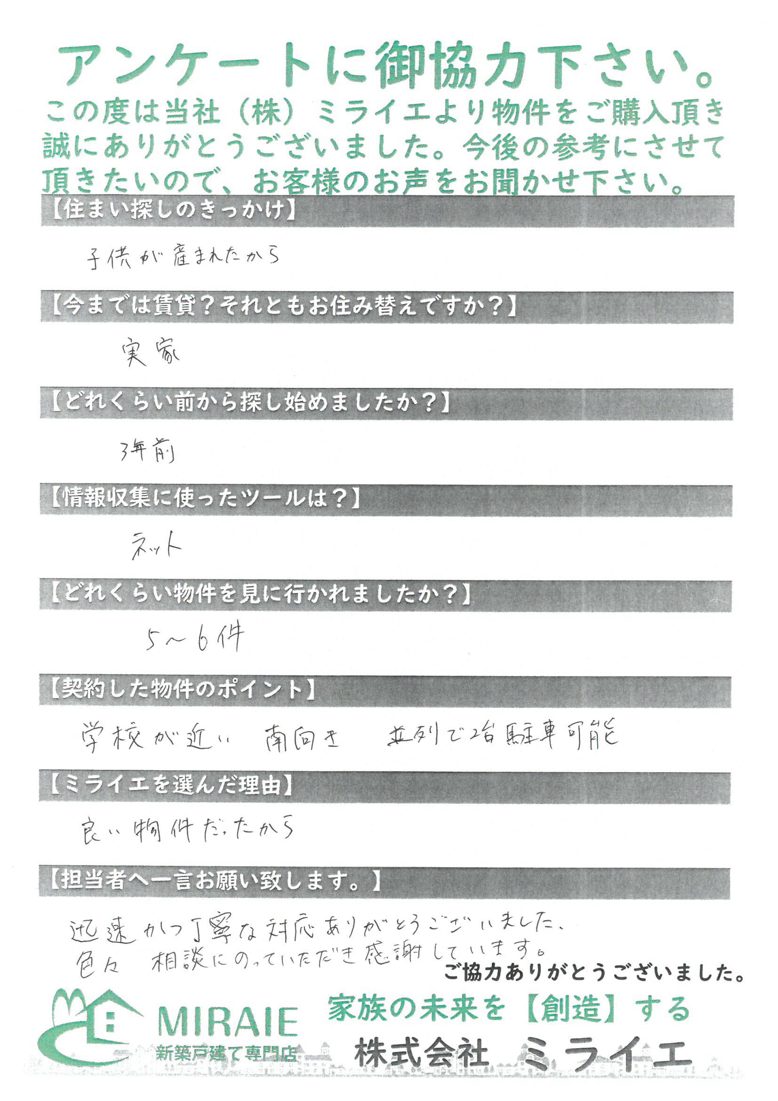 この度はミライエよりご成約頂き、誠にありがとうございました。