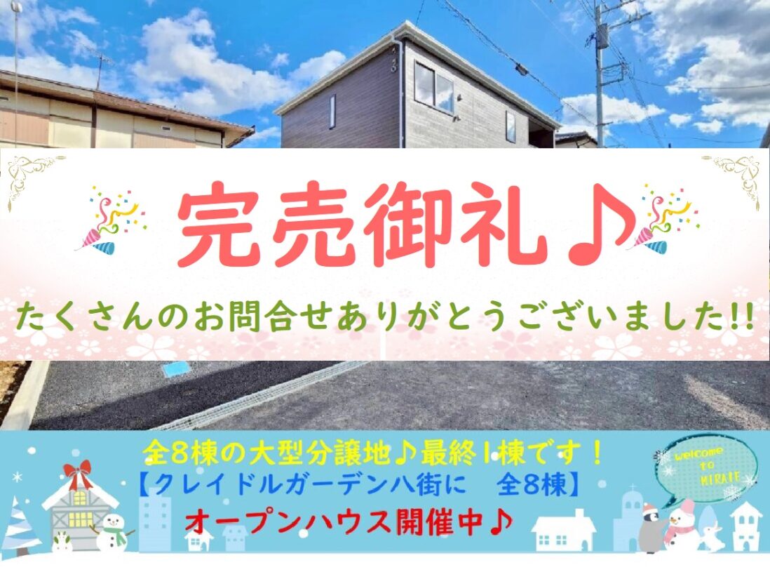 おかげ様で完売しました(*^-^*)これまでたくさんのお問合せありがとうございました(*‘∀‘)12月15日付最終1棟値下げしました!全8棟の分譲地♪!!【新築価格1988万円税込】敷地面積広々50坪・駐車2台可能♪八街…