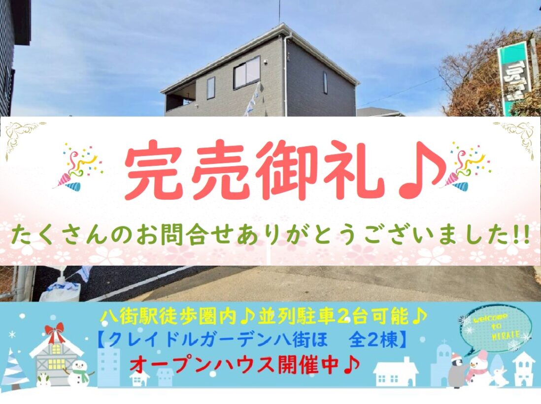 おかげ様で完売しました(*^-^*)これまでたくさんのお問合せありがとうございました(*‘∀‘)限定2棟!!【新築価格2088万円税込~】敷地面積広々42坪帖!全棟駐車2台可能♪八街駅徒歩15分!完成済みオープンハウス!…更新日 2026.2.23新築戸建オープンハウス