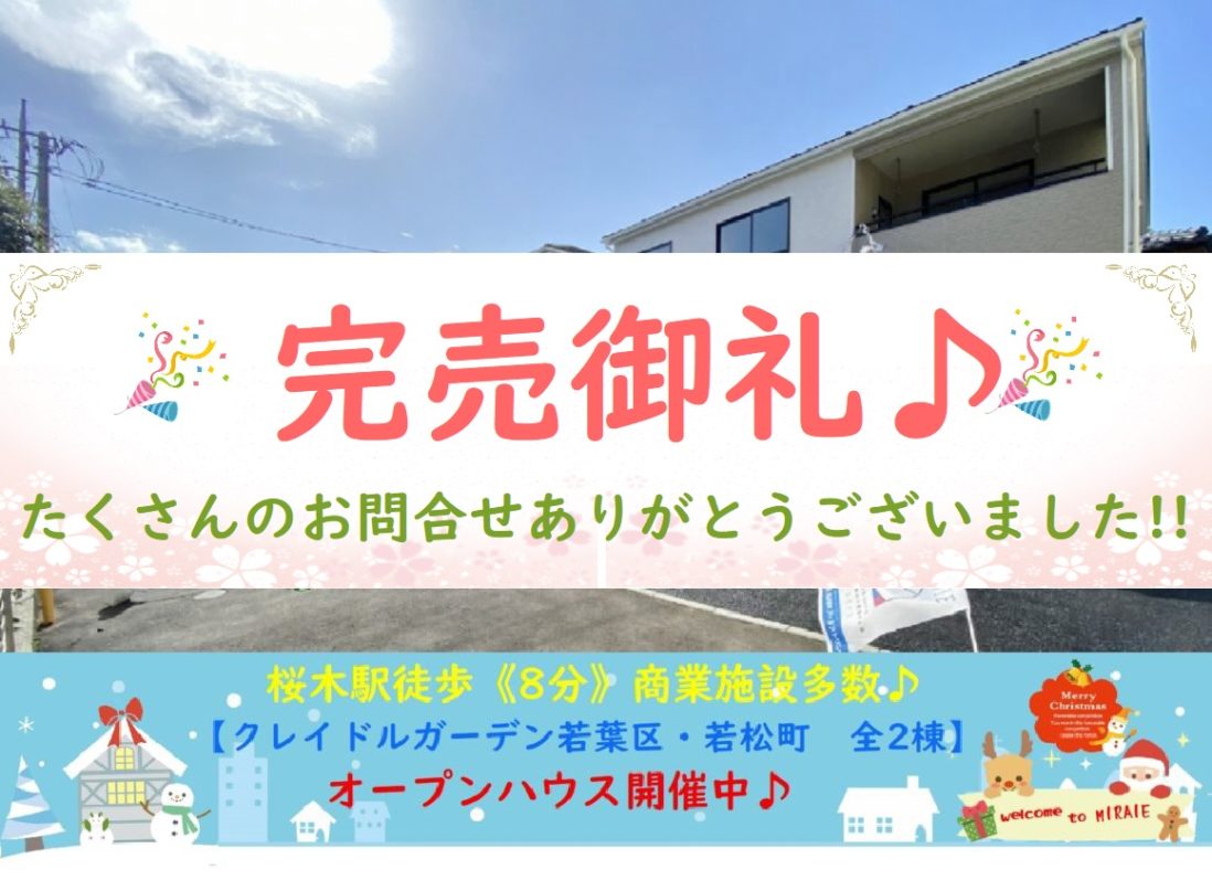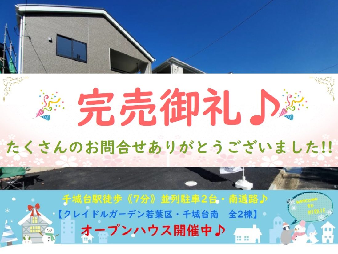 おかげ様で完売しました(*^-^*)これまでたくさんのご来場ありがとうございました(*‘∀‘)最終1棟です!12/22付全棟200万円ダウン!!限定2棟!!【新築価格2,180万円税込】千城台駅徒歩7分!!南道路で日当た…更新日 2021.1.28新築戸建オープンハウス