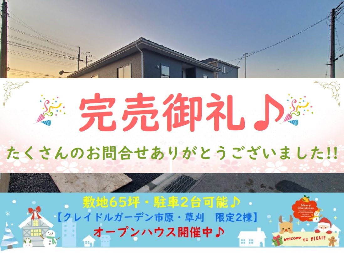 おかげ様で完売しました(*^-^*)これまでたくさんのご来場ありがとうございました(*‘∀‘)11/2付完成写真更新♪最終1棟!!【新築価格2,180万円税込】敷地65坪!駐車2台可能!ちはら台駅・コンビニ・ユニモ徒歩圏…更新日 2020.12.24新築戸建オープンハウス