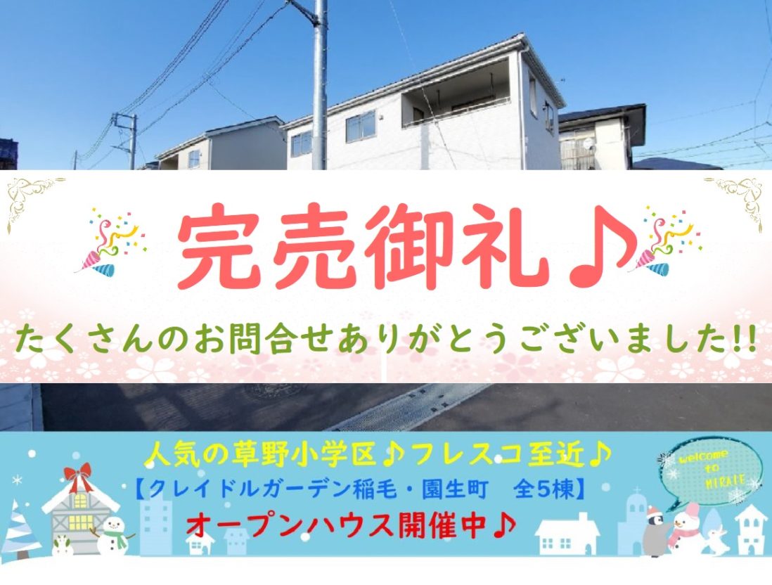 おかげ様で完売しました(*^-^*)これまでたくさんのご来場ありがとうございました(*‘∀‘)1/19付全棟再大幅値下げ!!【新築価格2,180万円税込~】人気の草野小中エリアです(*^-^*)小中学校・コンビニスーパー…更新日 2021.2.5新築戸建オープンハウス